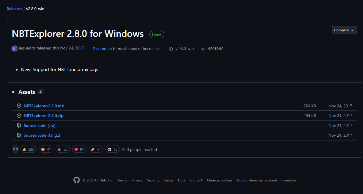 https://github.com/jaquadro/NBTExplorer/releases/tag/v2.8.0-win <- 릴리즈 바로가기