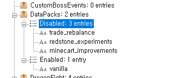 여기서 가위 모양을 눌러서 vanilla 를 제외한 모든 걸 Disabled로 옮기고 붙여넣기해줍니다.