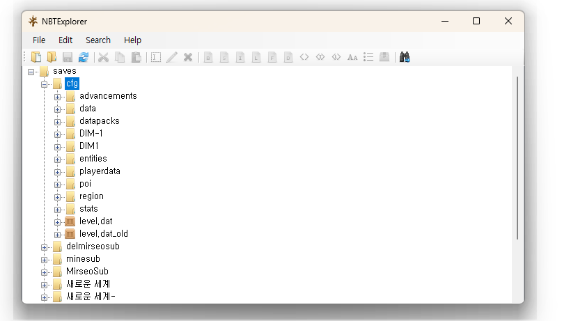 다음으로 수정할 월드의 level.dat을 열어줍니다