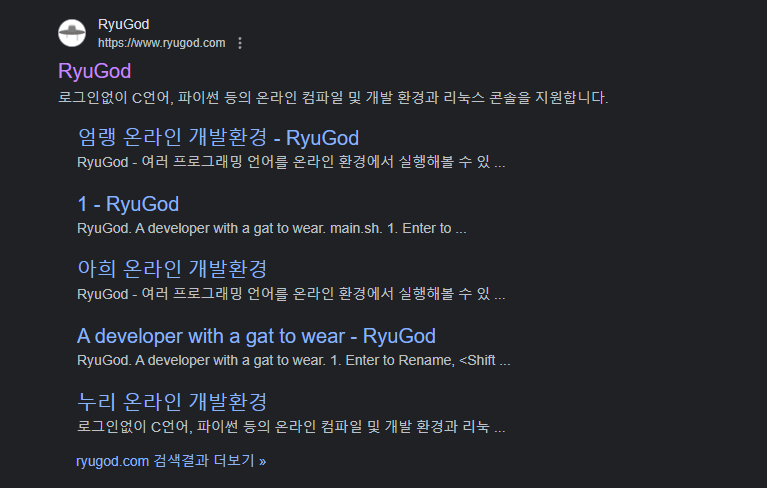 Ryugod 은 ryusatgat 닉네임을 사용하시는 개발자분이 개발한 사이트로, 수 많은 코드를 별도의 회원가입 없이 실행하고 테스트 할 수 있는 공간입니다.