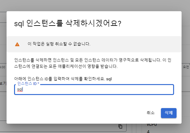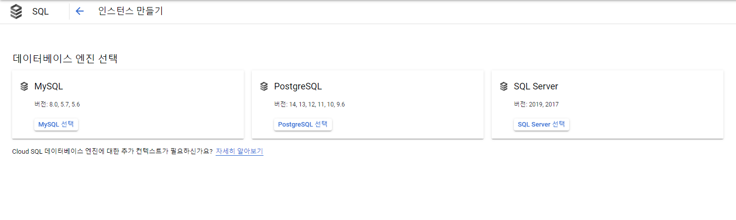 GCP -> 막대 3개 -> SQL 창으로 오면 이런게 있습니다