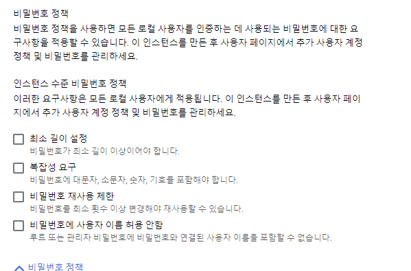 [비밀번호 정책]을 누르시면 이런게 나오는데 집어치고 넘어가면 안 됩니다