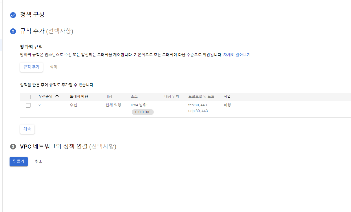 ( 태그 만들어서 인스턴스 네트워크 태그에 추가하면 되는데 그냥 정책이 더 좋은거 라고 생각하세요 )