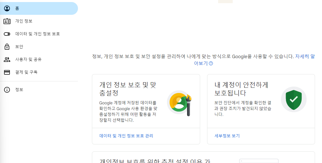 우선 이걸 확인하기 위해서는 구글 > 내 계정 관리 > 보안 탭으로 들어가야 합니다