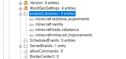 마인크래프트의 데이터는 청크 단위로 저장된다고 알려져 있지만, 실험적 설정은 공통설정 (CFG)에 저장되기 때문에 해당 파일을 쓸 때는 NBT데이터를 수정해야 합니다 (.mca 아닙니다 )