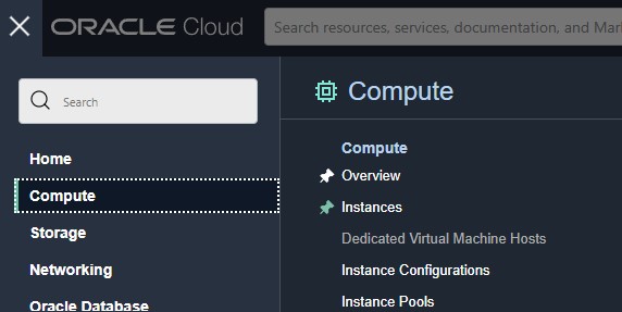 위에 ( 로고 옆에 ) 막대기 3개 -> Compute -> Instamces