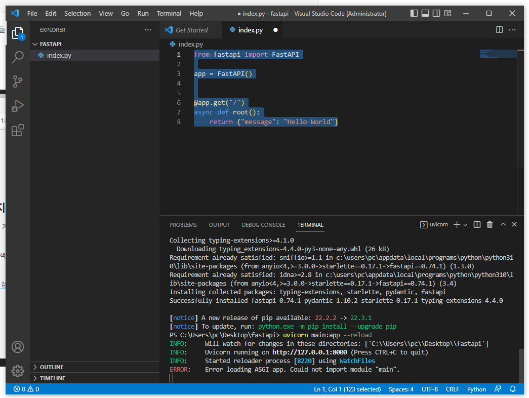 FASTAPI라는 걸 설치해 봐야 써먹으니까요?