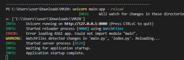 uvicorn main:app --reload