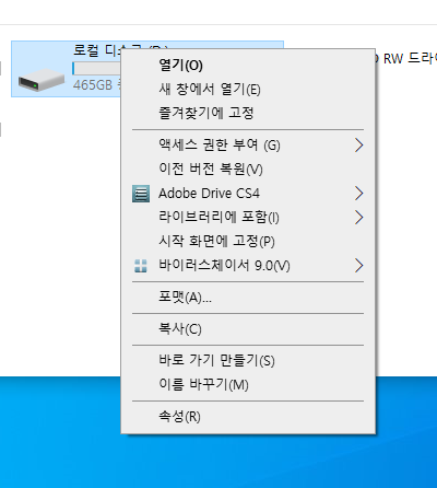 2. 검사하고 싶은 디스크 선택하고 -> 우클릭 -> 속성(R)