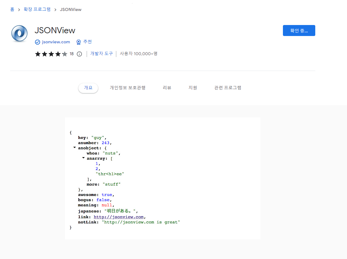 여기 가서 JSON View 확장 프로그램을 받아줍니다