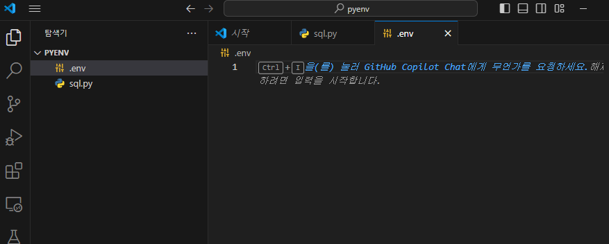 우선 이런 식으로 프로젝트 폴더를 열고 . env 파일을 생성합니다