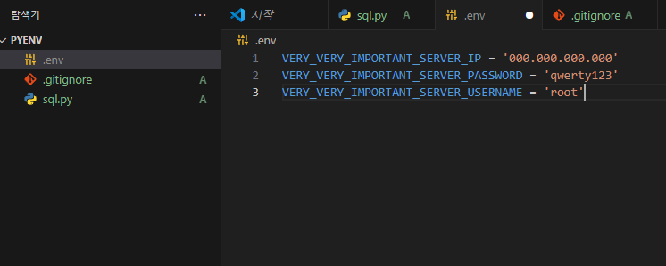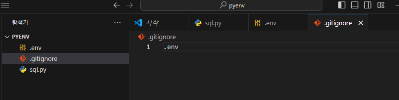 그리고 .gitignore 파일을 생성해서 .env 파일을 무시하도록 설정합니다