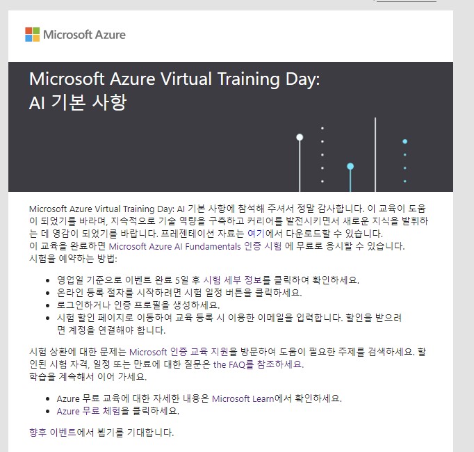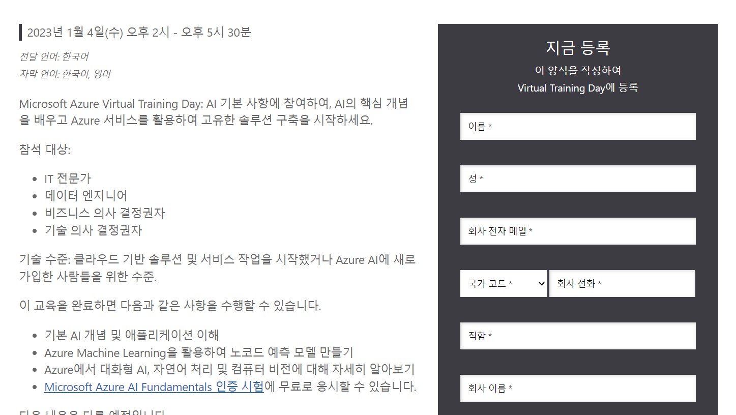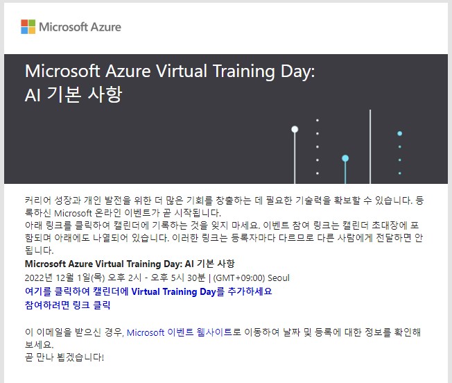 저는 제목 그대로 저번에 12/1일에 진행한 Azure Virtual Training Day AI Fundamentals에 참석하면서 강의를 수강했는데요