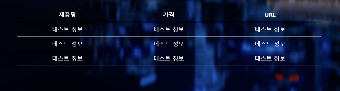 이런 형식인데 중요한건 color: white; , width / hegiht 값을 줘서 테이블 자체를 건든 거라는 거죠