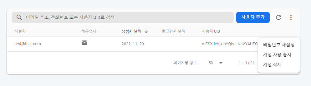 사용자 이메일을 만들어 추가하고 지울 수도 있습니다 실수로 실제 유저 지워버리면 큰일나니 테스트 용으로만 쓰시길