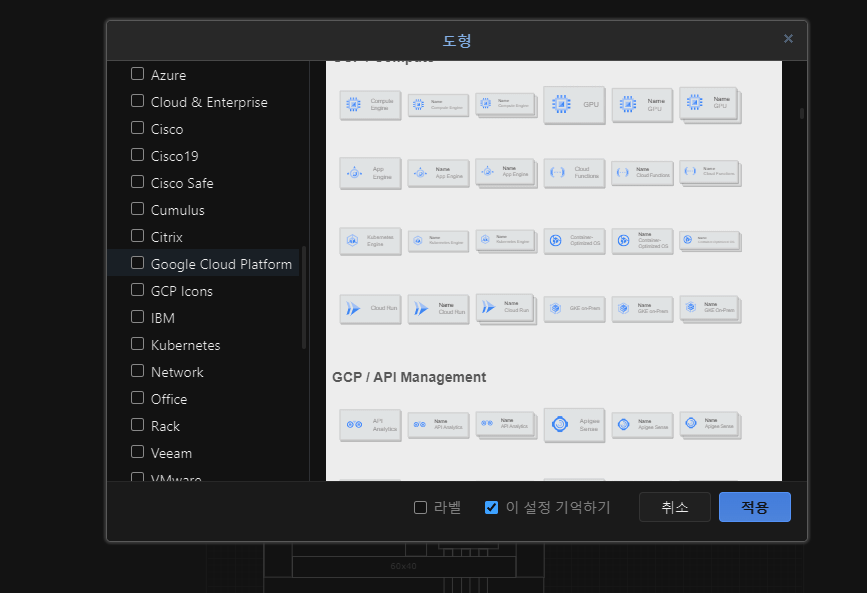 예를 들어 구글 클라우드의 아키텍쳐를 설계한다면 관련된 설계 아이콘이 모두 존재합니다