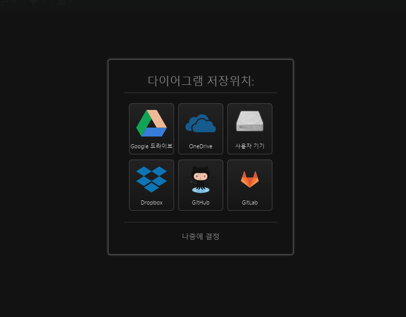 저는 깃허브에 저장하기로 하고, 새로운 다이어그램을 만들기를 눌러보겠습니다